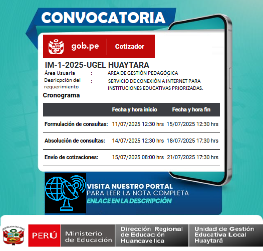 Convocatoria para el Servicio de conexión a internet para 14 instituciones educativas priorizadas: 1 Item: I.E. Nº 22157 PRIMARIA Y